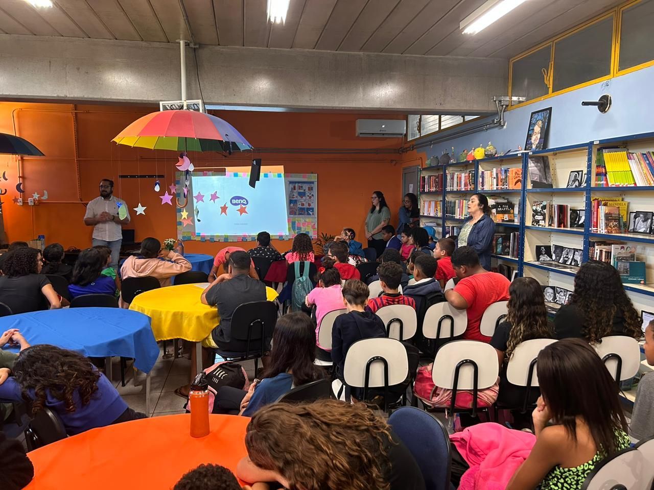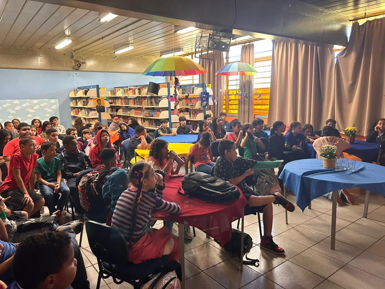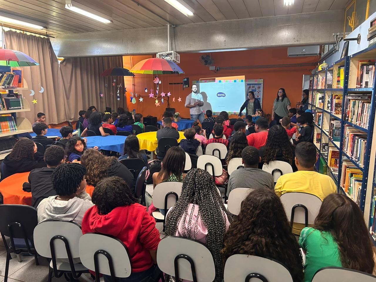 Durante a apresentação, as crianças puderam assistir ao filme "Bioma Amazônia", que oferece uma visão abrangente e fascinante sobre a flora e fauna da região, além de abordar as ameaças que o bioma enfrenta devido à exploração humana e às mudanças climáticas. O conteúdo visual do filme capturou a atenção dos estudantes, proporcionando uma experiência imersiva que facilitou a compreensão dos temas apresentados.